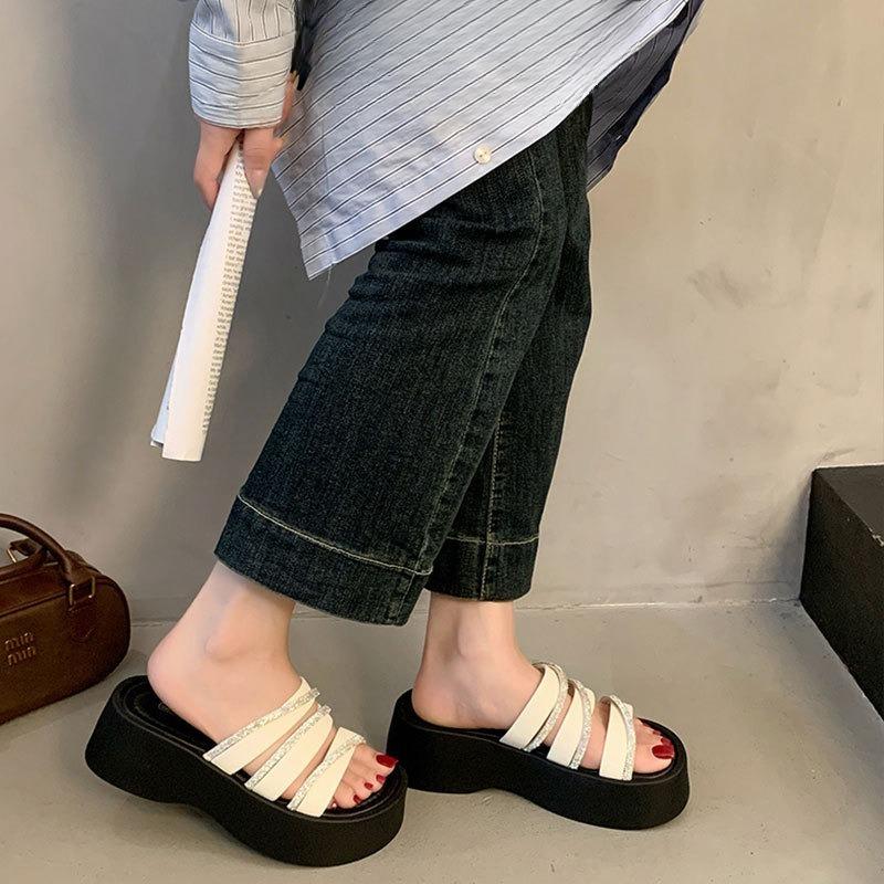 Обувь на толстой подошве Обувь для увеличения роста Тапочки Новый стиль Пляжные шлепанцы 40 бежевый