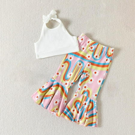 SILVERCELL Toddler Baby Girl Flare Outfits Halter Crop Top Floral Print Bell-Buttoms Pants Trousers Summer Clothes 6M-4T
