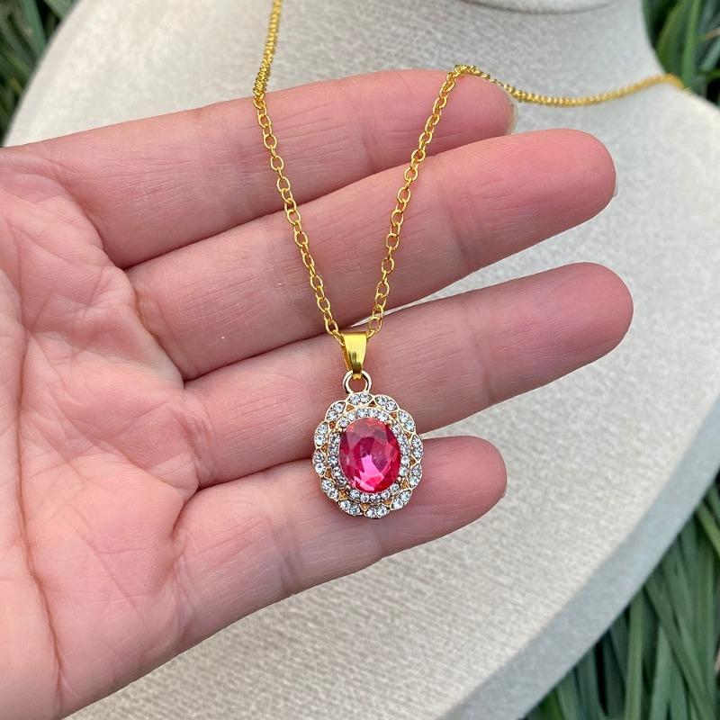 Овальная розово-красная цветная подвеска для женской модной ключичной цепочки