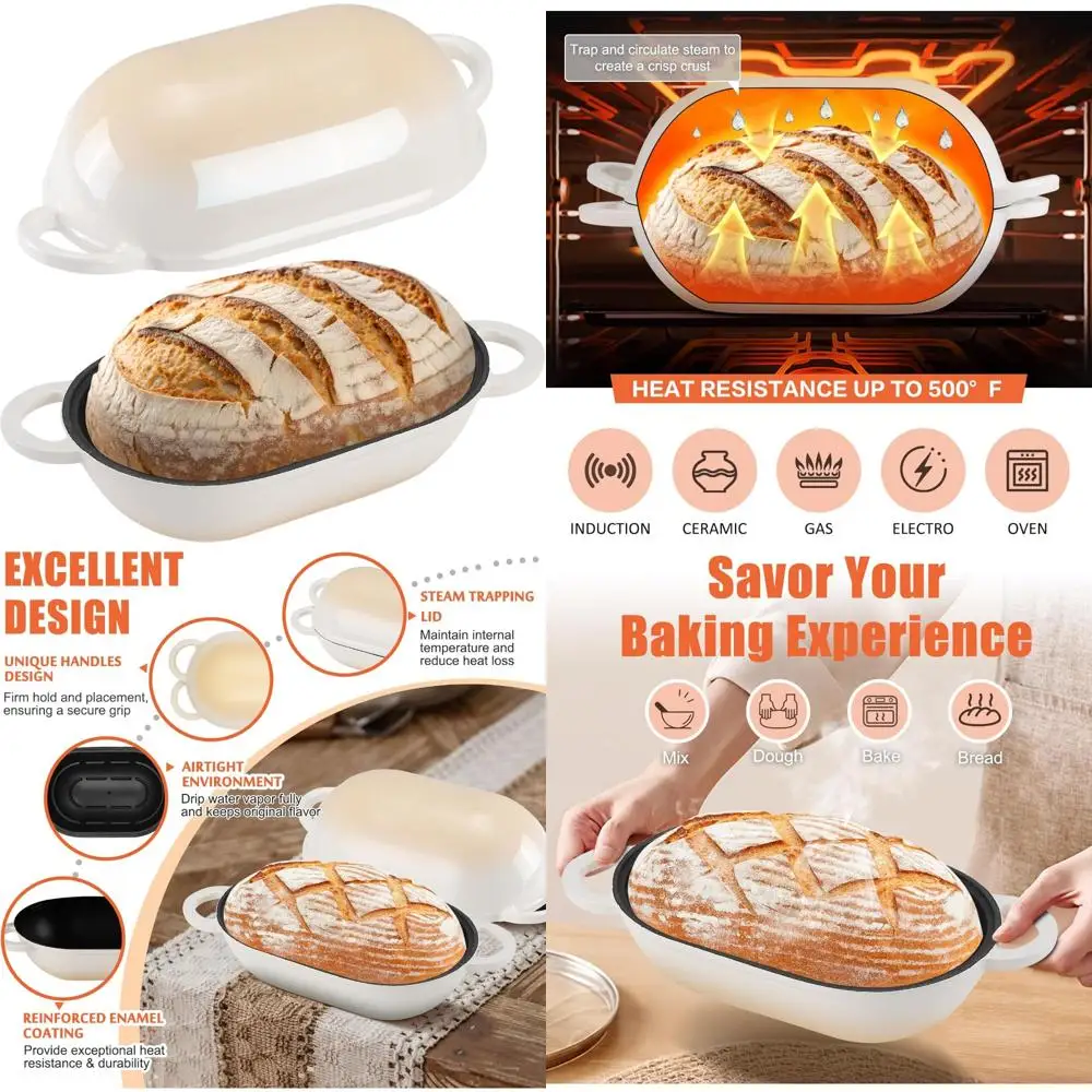 Овальная чугунная форма для хлеба на закваске, 5-литровая печь для хлеба с крышкой, идеально подходит для домашней выпечки хлеба