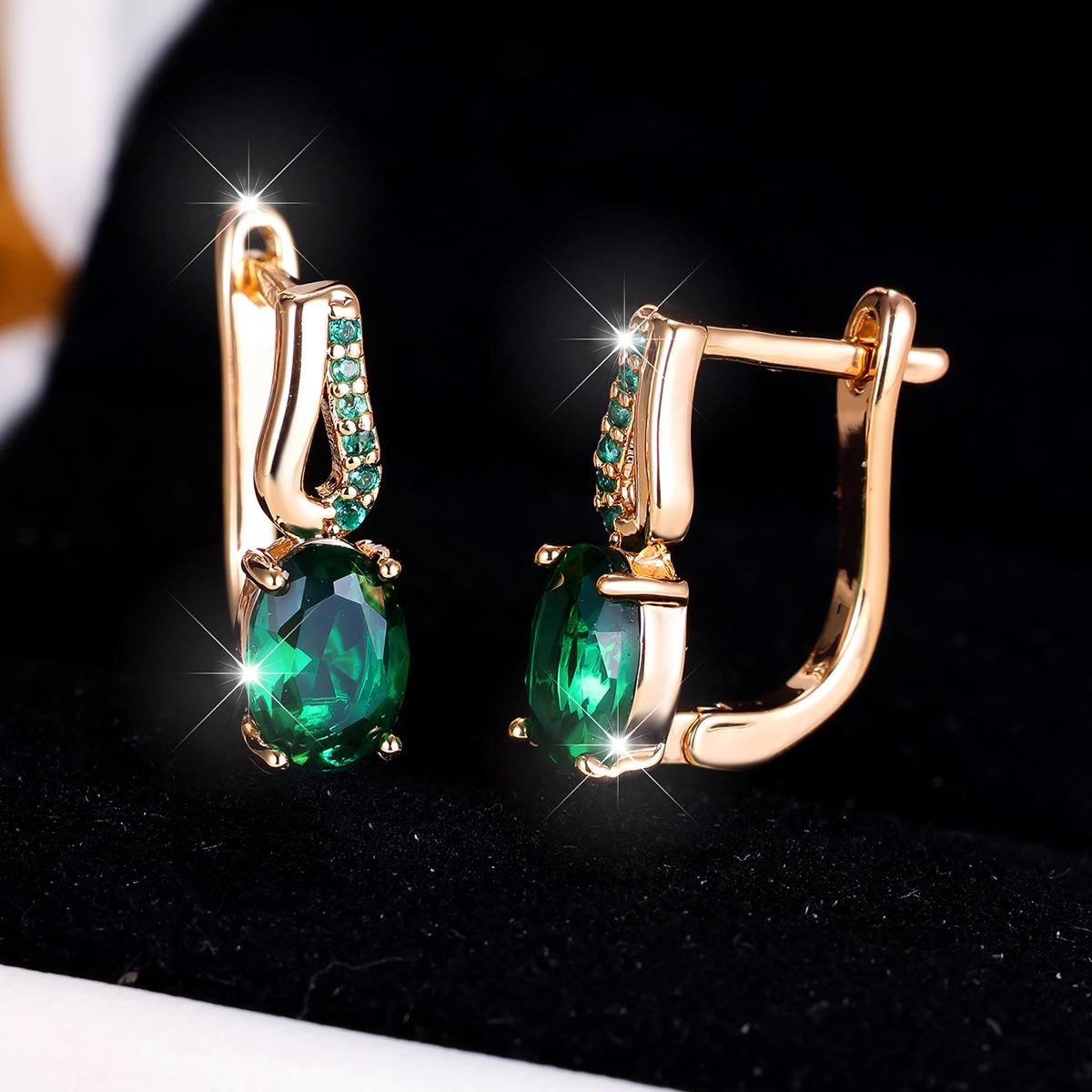 Овальные серьги-кольца с зеленым цирконием для женщин, милые женские очаровательные серьги золотого цвета, свадебные украшения, подарок зелёный