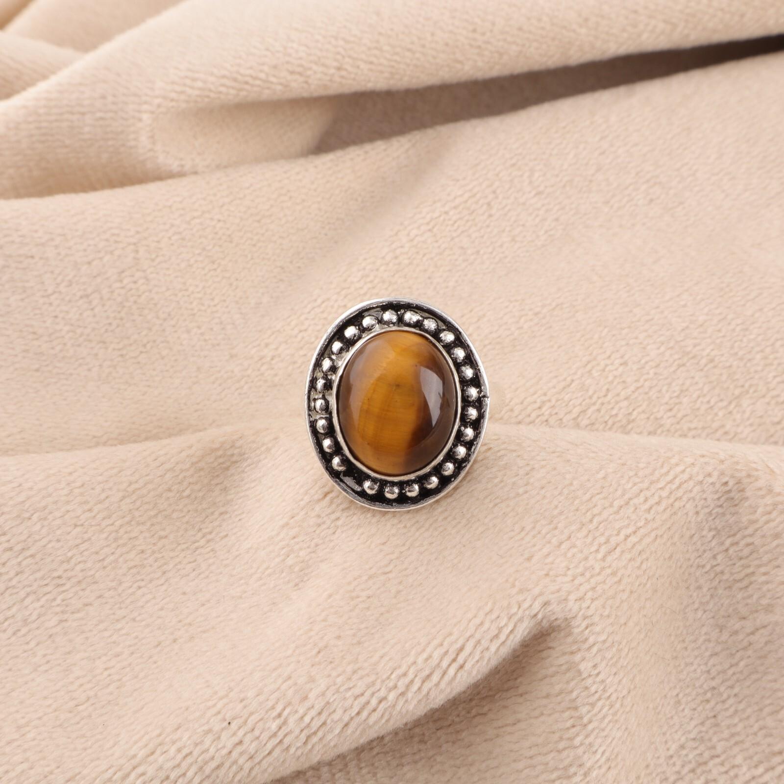 Овальный Желтый Тигровый Глаз Драгоценный Камень 925 Стерлинговое Серебро Ювелирные Изделия Целебный Камень Кольцо RR-62-32 13