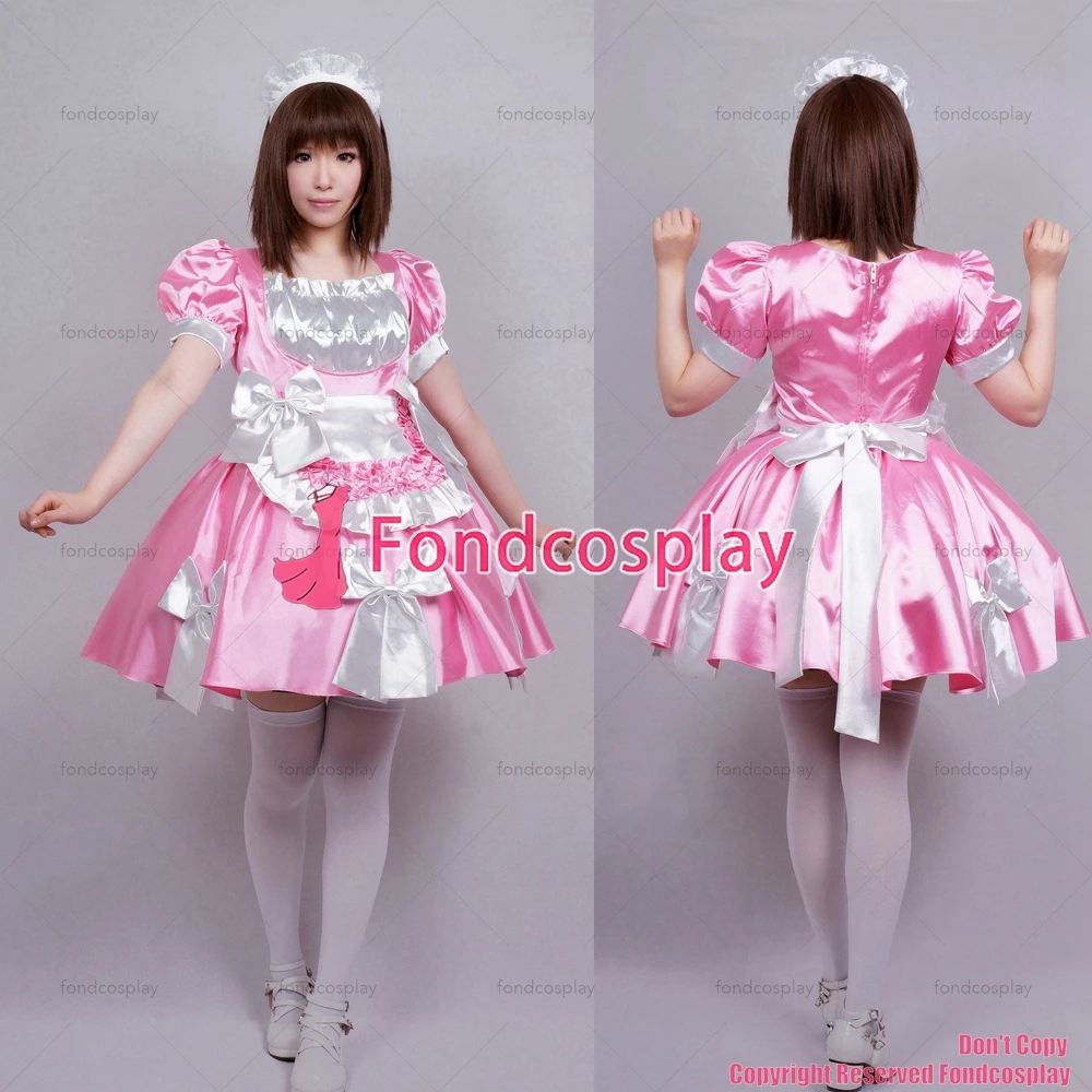 Одежда для косплея для взрослых, сексуальная женская одежда, Короткое атласное розовое платье, Униформа, белый фартук, костюм для косплея CD/...