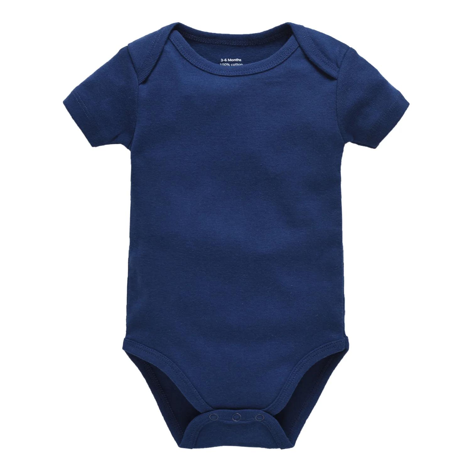 Одежда для новорожденных, летние боди для мальчиков и девочек, 100% хлопок, простые белые детские комбинезоны, одежда 0-24 мес. 6-9M темно-синий