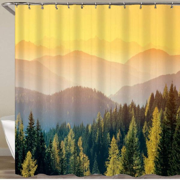 shower curtain set with 12 hooks,landscape morning sunlight in the forest,decorative bath curtain modern bathroom