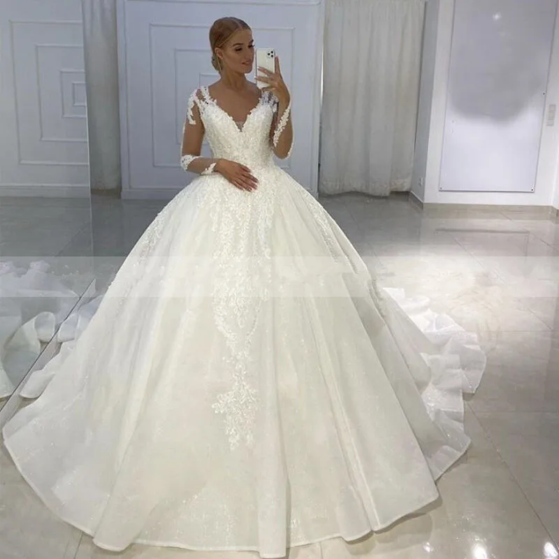 Одежда с длинным рукавом свадебные платья в стиле принцессы с v-образным вырезом бальное платье размера плюс платье vestido de novia свадебное плат...