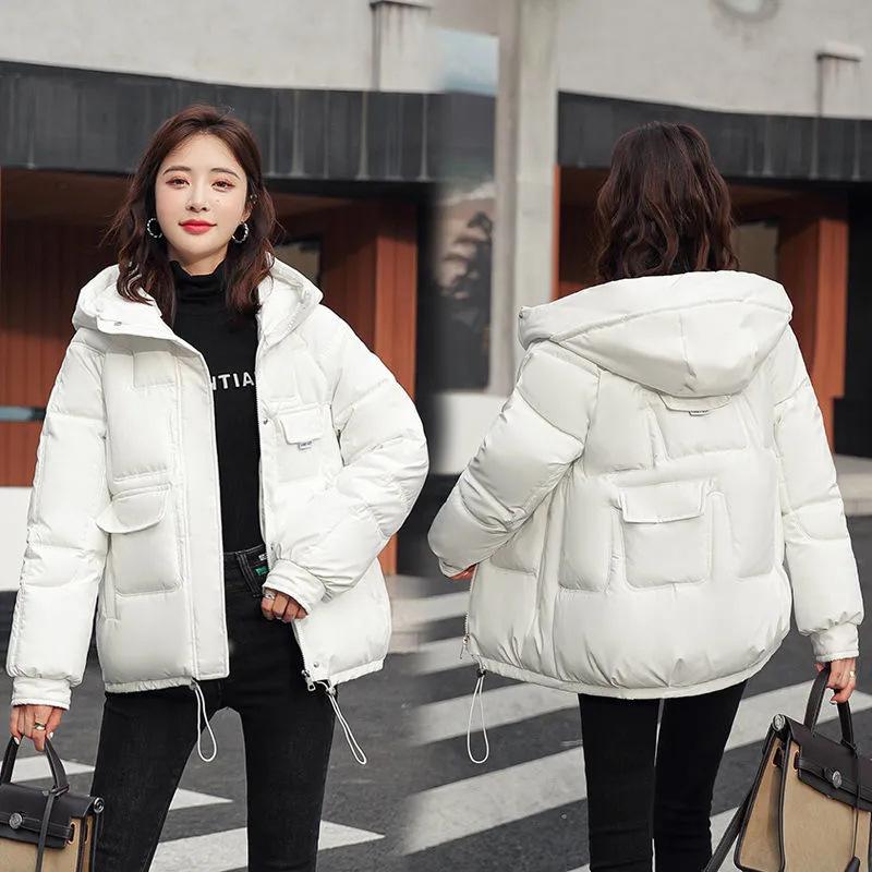 Одежда с хлопковой подкладкойЖенская короткая свободная зимняя хлопковая куртка с капюшоном Хлопковое пальто Хлопковая куртка Утолщенная хлопковая куртка M белый
