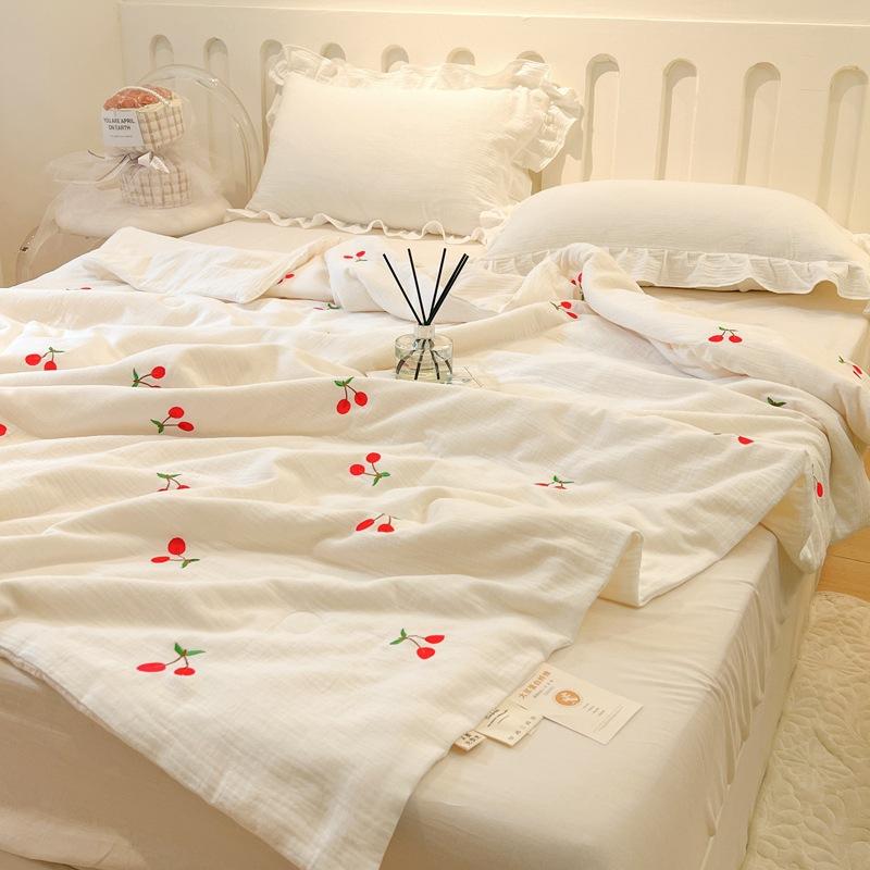 Одеяла из чистого хлопка, жатая марля, летние однотонные одеяла с вышивкой медведя, двуспальное одеяло для пары, одеяла для кровати, прохладное одеяло для кондиционера 150x200cm