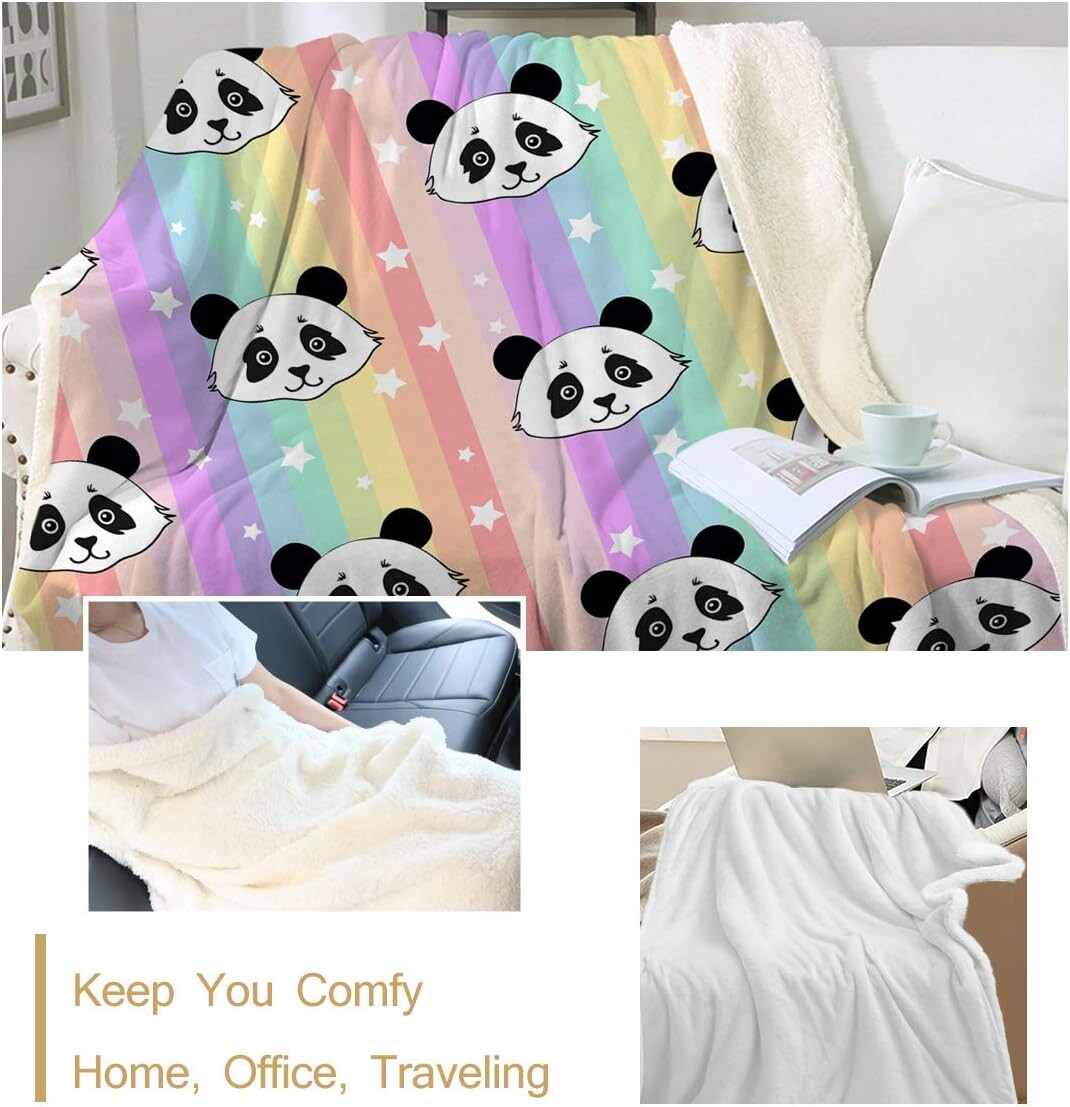 Одеяла Sleepwish с пандой для детей и девочек, милое плюшевое одеяло с радужной пандой, двустороннее флисовое одеяло из шерпы с животными, толстое пушистое легкое одеяло для кровати, дивана, дивана, можно стирать в машине (50 x 60 дюймов)
