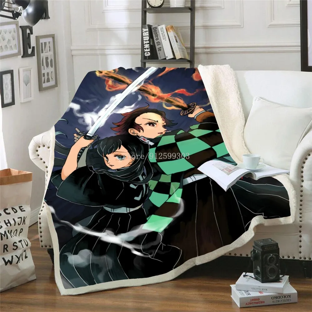 Одеяло в японском стиле из аниме «рассекающее демонов», бархатный плюшевый плед с 3D принтом, мягкое теплое постельное белье для детей и взро...