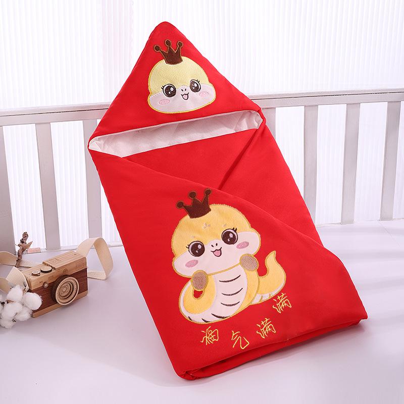 Одеяло для новорожденных Red Snake Year, чистый хлопок, всесезонная толщина, идеально подходит для использования в родильном зале 90*90cm