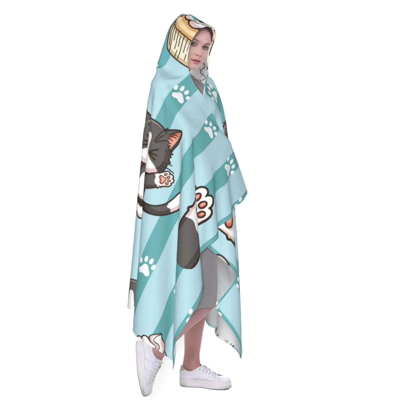 Одеяло из микрофибры с капюшоном, милый мультяшный рисунок, шерпа, флис, мультяшное носимое, в виде кошачьей лапы, толстое покрывало на диван...