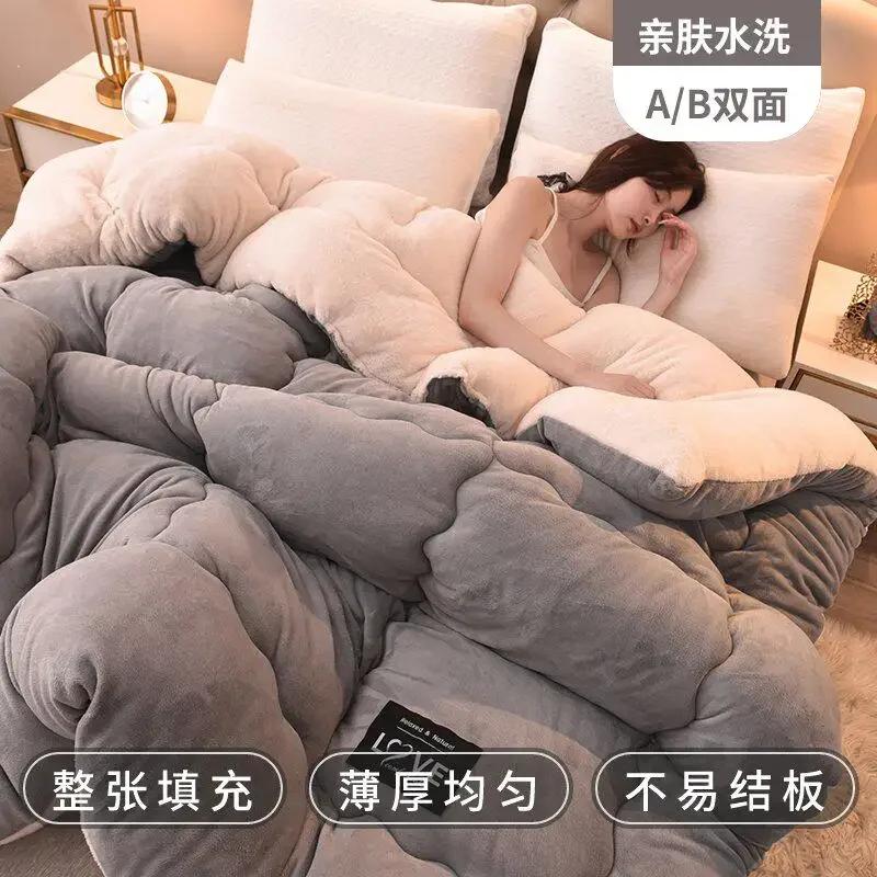 Одеяло из овечьей шерсти зимнее утолщенное теплое односпальное двуспальное одеяло для общежития одеяло-комфортер из молочного фланеля на осень и зиму 150x200cm 2.5kg