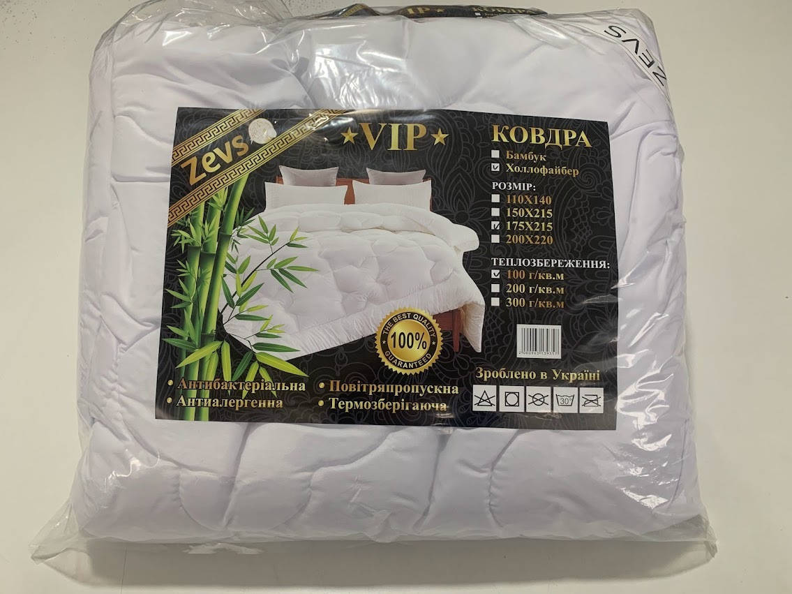 Одеяло-покрывало летнее двуспальный размер ТМ "ZEVS" VIP (175х215 см, холлофайбер 100 гр/м2, микрофибра белая), Белый