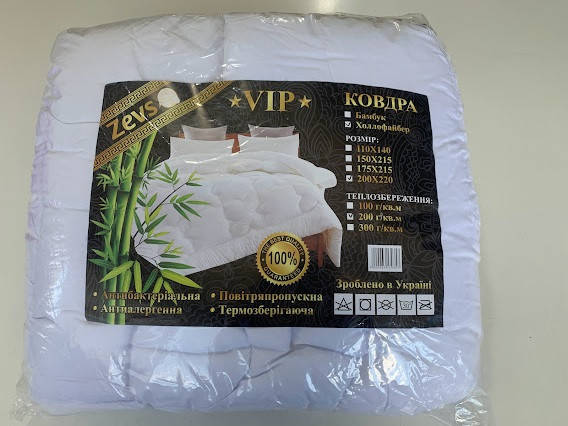 Одеяло-покрывало летнее евро размер ТМ "ZEVS" VIP ( 200х220 см, холлофайбер 200 гр/м2, микрофибра белая), Белый