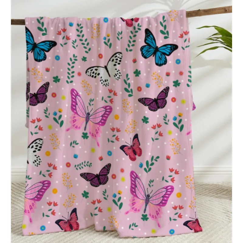 Одеяло с бабочкой, розовое мягкое бархатное фланелевое одеяло, подходящее для дивана, спальни, плюшевое красочное цветочное одеяло
