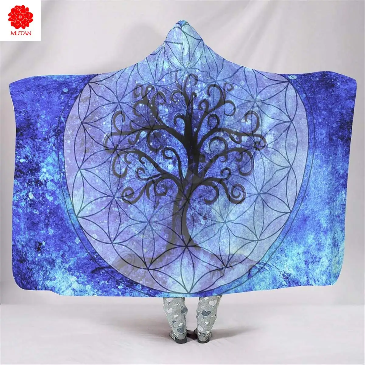 Одеяло с капюшоном «дерево для жизни», цветное Флисовое одеяло из шерпы для взрослых и детей, постельное белье из микрофибры, Прямая поставк...
