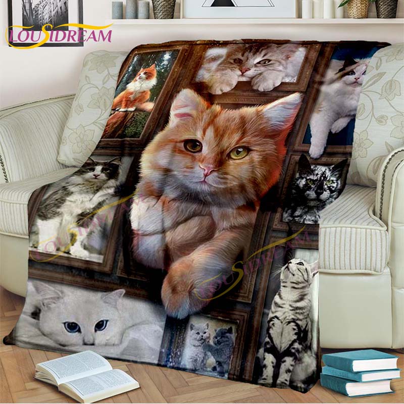 Одеяло с кошачьими коллажами, одеяло с принтом кота для дивана, мягкое теплое декоративное одеяло для кровати, гостиной, подарок для влюбленных кошек, одеяло с животными