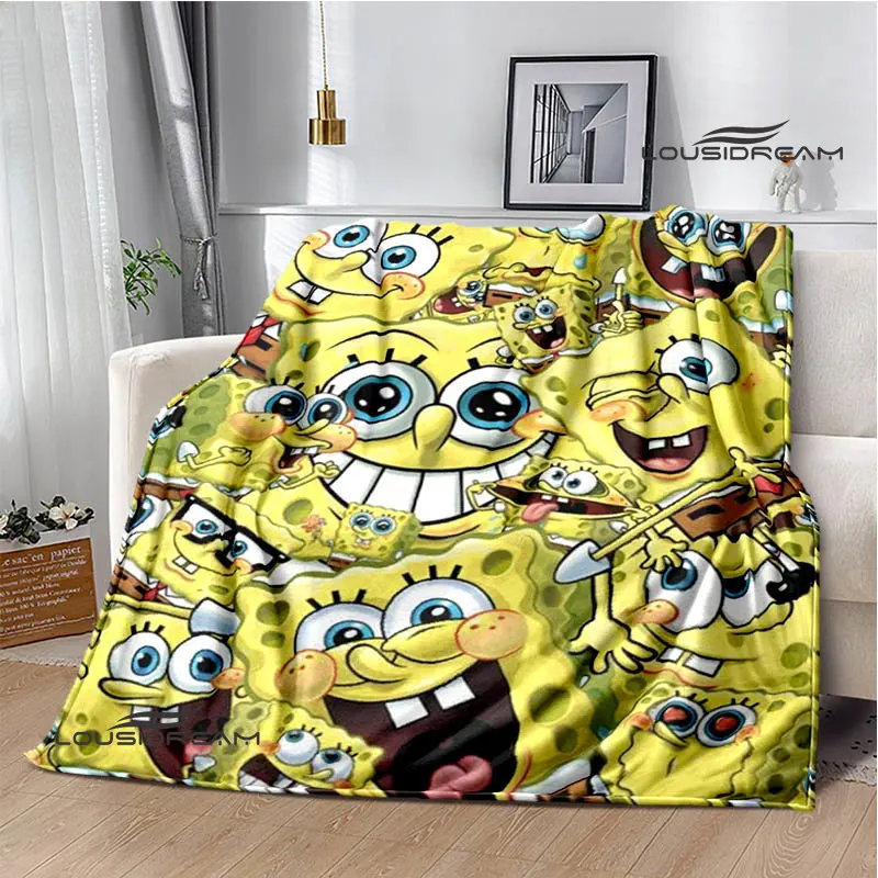 Одеяло с мультяшным принтом Губка Боб сохраняет тепло мягкое и удобное домашнее дорожное одеяло для кровати одеяло для пикника подарок на день рождения