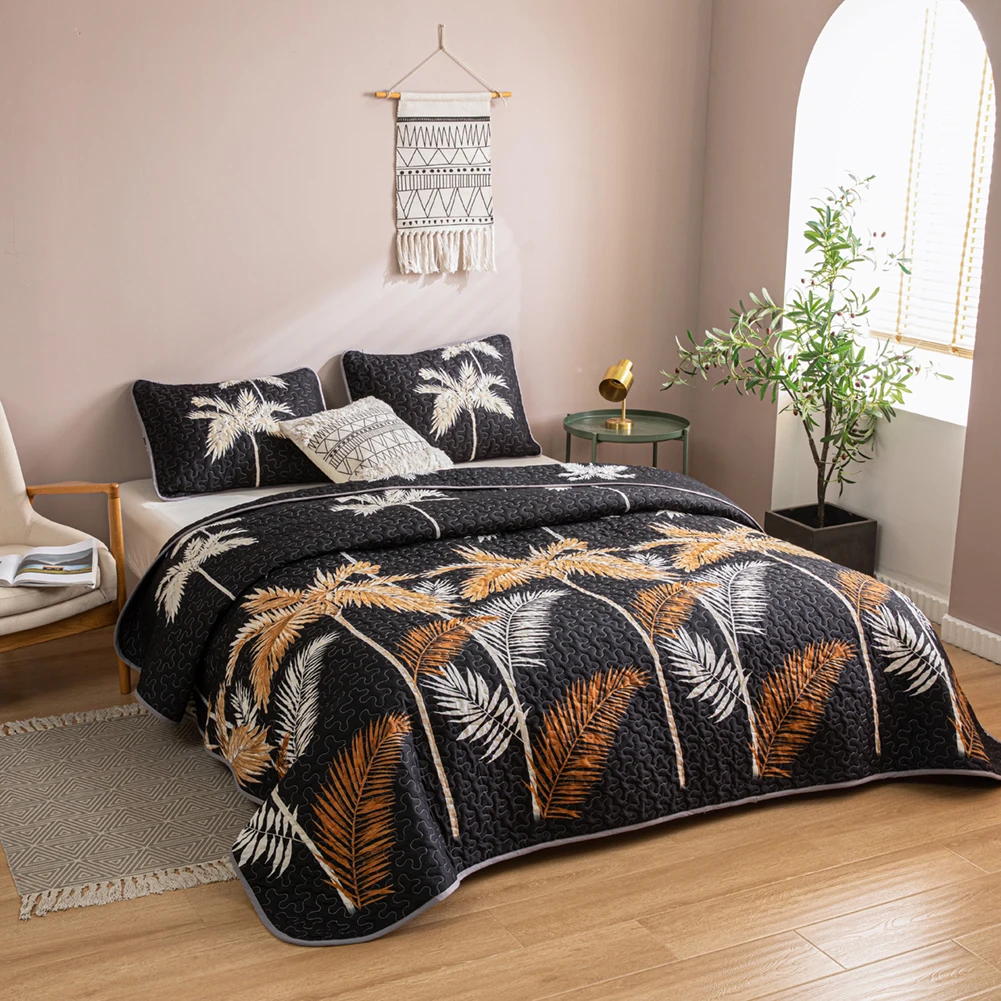 Одеяло с рисунком пальмы, Тропическое покрывало, черное Ботаническое постельное белье с рисунком листьев, тропические тематические покрыв...
