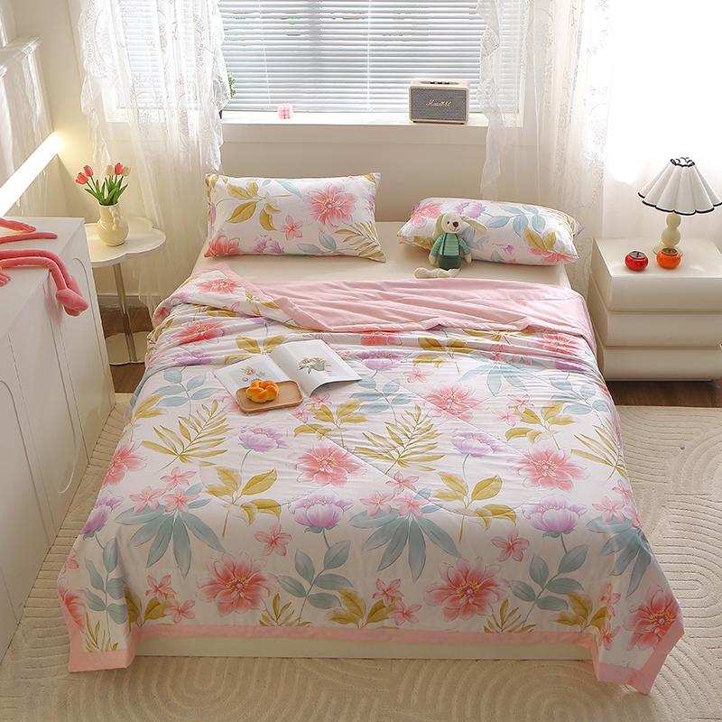 Одеяло с розовым цветочным принтом, 100% хлопок, приятное для кожи, удобное, тонкое, для кэмпинга, путешествий, домашнего декора 150x200cm Single 1Pc