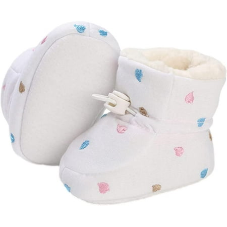 Baby Cozy Fleece Booties Warm Lined Stay On Baby Boy Girl House Slippers Fluffy Sock Booties with Non-Slip Gripper Infant Winter Ankle Boots Toddler First Walker Crib Warm Shoes(F# White)