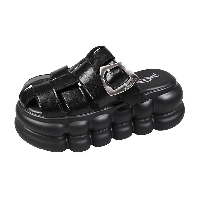 Однопедальные полые толстоподошвенные удобные римские прохладные тапочки свиная клетка лето 2025 новые плетеные тапочки с закрытым носком женские 39 чёрный