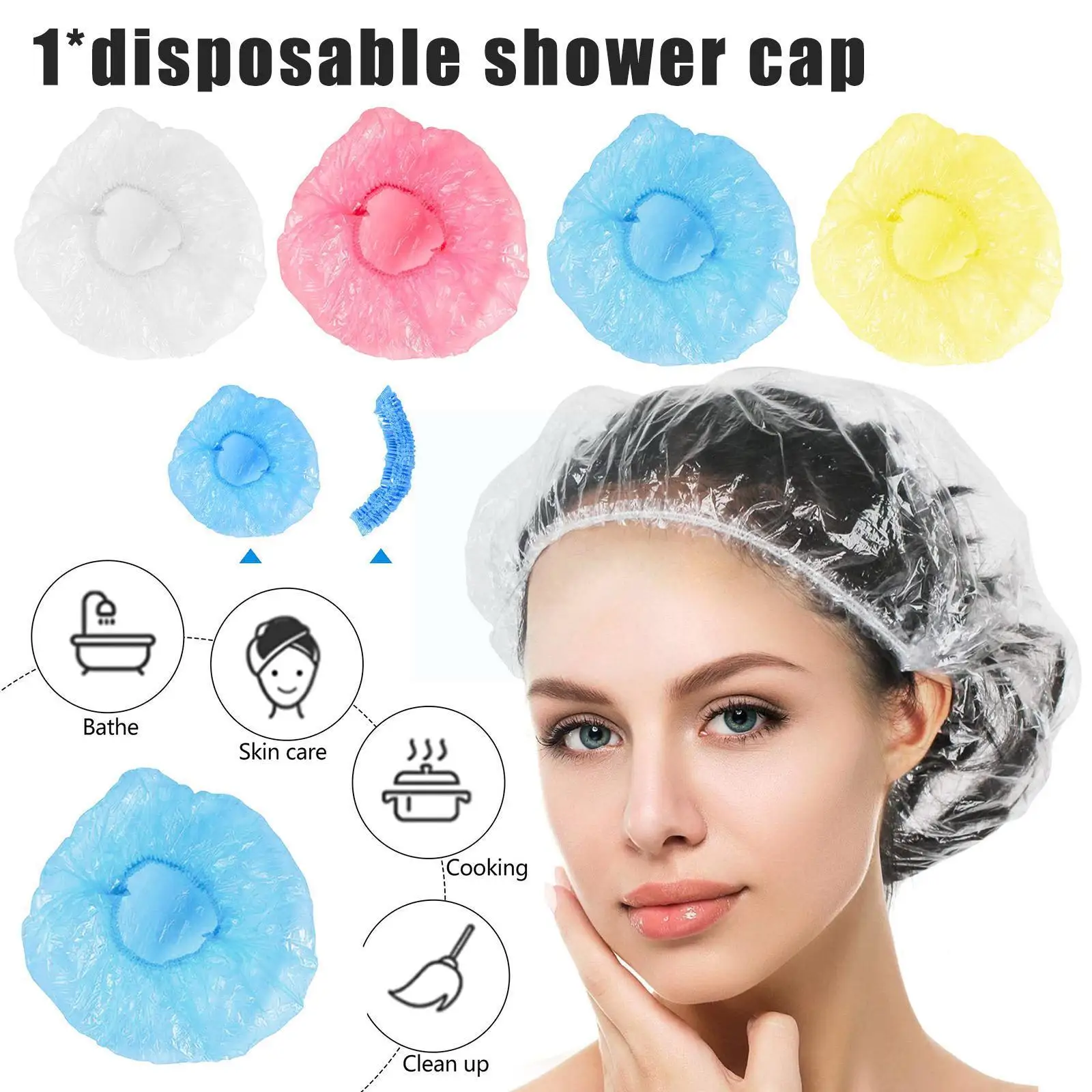Одноразовая душевая шапочка 100 шт./лот, пластиковая Водонепроницаемая пластиковая шапочка, прозрачная салонная шапочка для окрашивания, го...