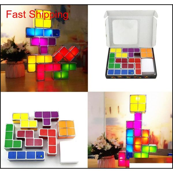 2019 upgrade diy tetris night light colorful stackable tangram puzzles 7 pieces led induction interlo qylvzz nana_shop, Silver
