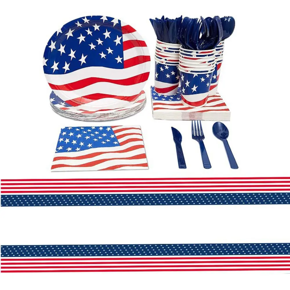 Одноразовая посуда 4 июля, Национальный флаг США, тематическая партия «сделай сам», День независимости Америки, товары для праздника, декор ...