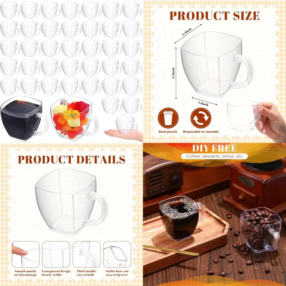 Одноразовые 100 упаковок пластиковых чашек для чая на 5 унций с ручкой, многоразовые мини-кофейные кружки, квадратные чашки для эспрессо для дома и офиса