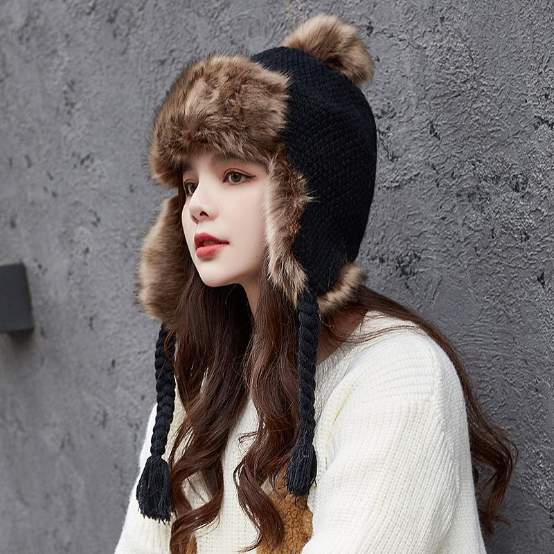 Однотонная защитная шапка для ушей Детская зимняя шерстяная шапка Корейская версия с изображением маленького лица Утолщенная велосипедная шапка Защита ушей Вязаная шапка Сохраняет тепло 55-60cm чёрный