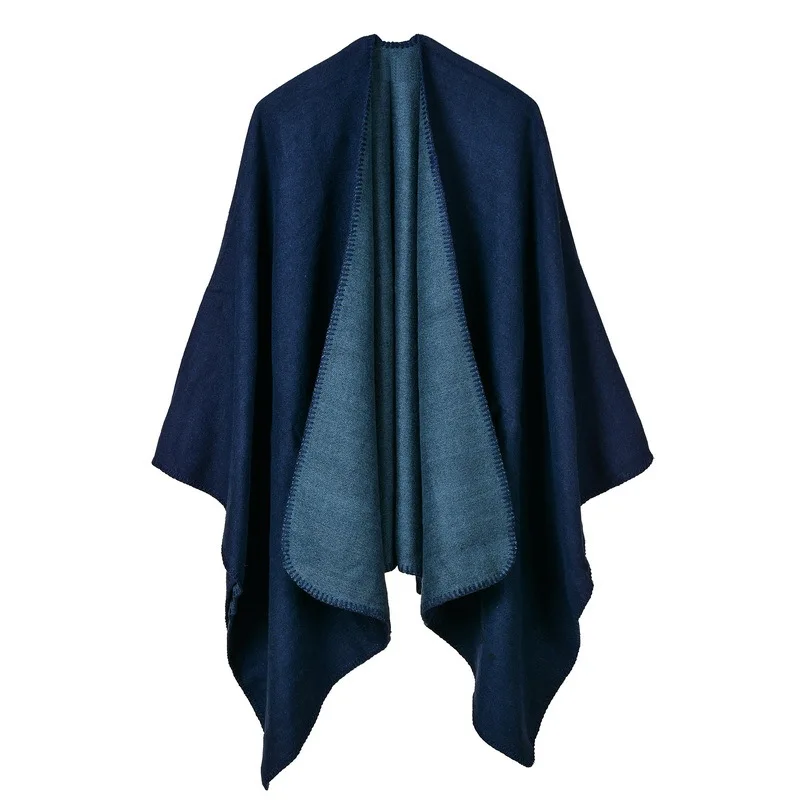 Однотонная искусственная кашемировая шаль с большим разрезом, популярная в Европе и Америке, теплая монохромная накидка, простой плащ