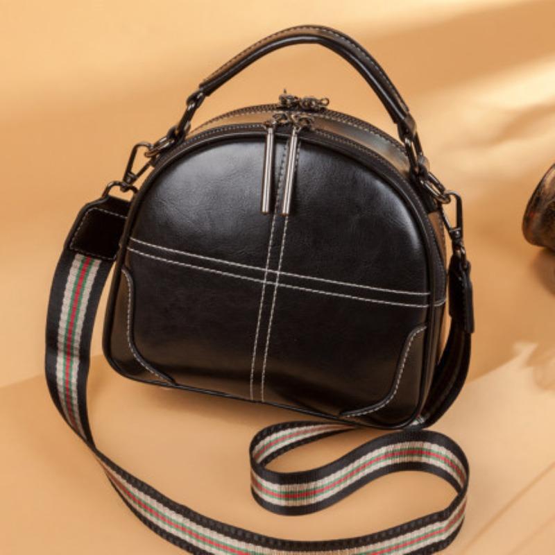 Однотонная кожаная сумка через плечо с прошитыми швами для женских сумок на одно плечо чёрный