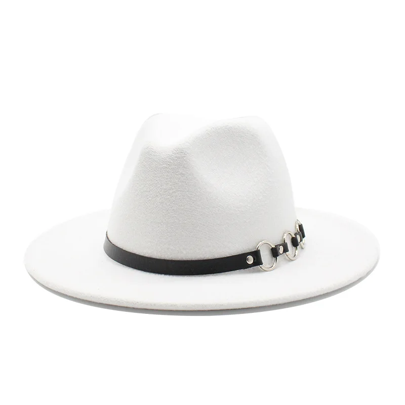 Однотонная мужская, женская, мужская, шерстяная, фетровая, белая, черная, стандартная, с поясом и металлическим кольцом, с плоскими полями, дж...
