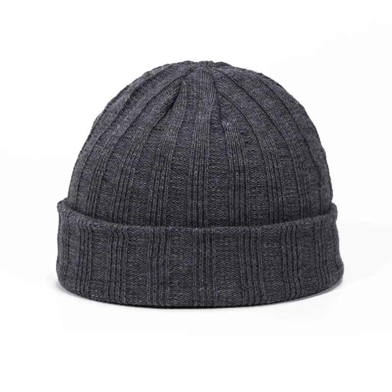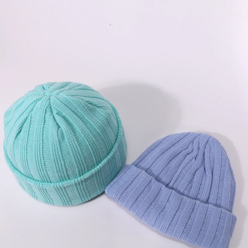 Однотонная осенне-зимняя уличная спортивная теплая плотная мягкая трикотажная короткая шапка с манжетами в виде дыни шапочка мешковатая ш...