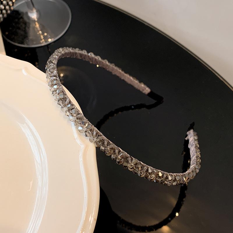 Однотонная повязка на голову с кристаллами для девочек, простая и милая повязка на голову с внешней стартовой карточкой, ювелирные изделия серый