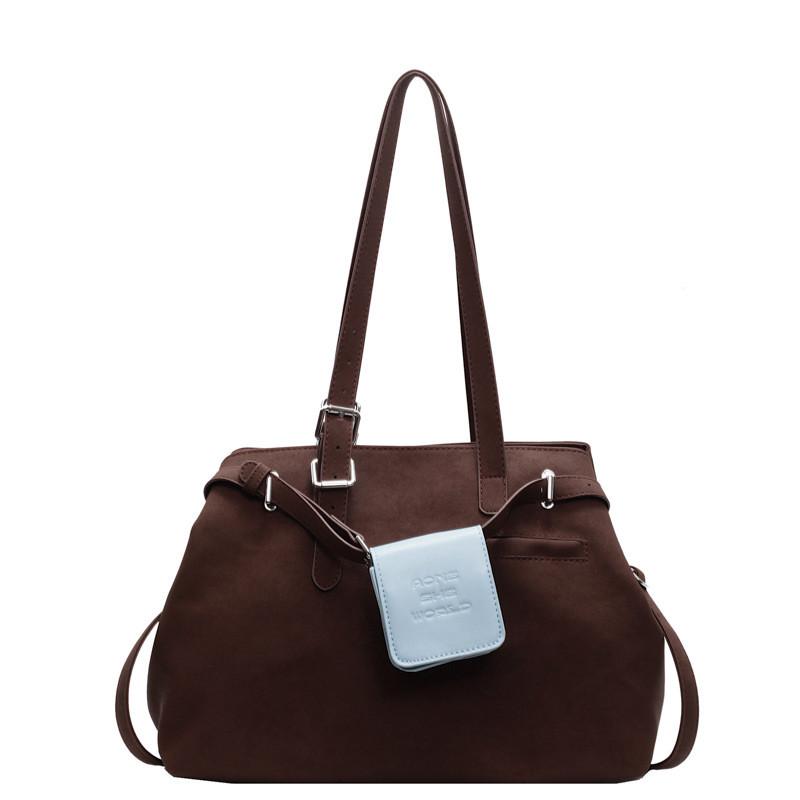 Однотонная простая замшевая женская сумка-тоут большой вместимости с подвеской в виде маленькой сумочки