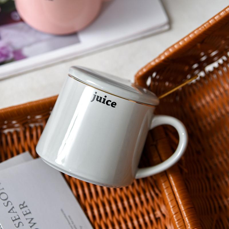 Однотонная простая кружка с крышкой и ложкой, чашка для питья, офисная керамическая кружка для мальчиков, для домашнего использования 310ml