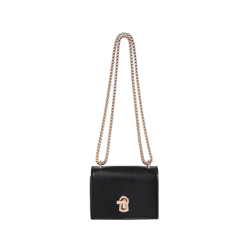 Однотонная простая модная сумочка с цепочкой, женская, ранняя весна 2024 года, новый иностранный стиль, маленькая квадратная сумка через плечо чёрный