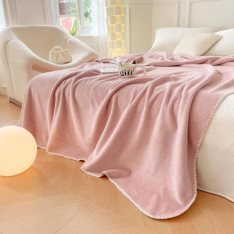 Однотонное вафельное многофункциональное одеяло, одеяло для обеденного перерыва, повседневное одеяло для спальни и дивана, теплое и удобное 70x100cm 1pcs розовый