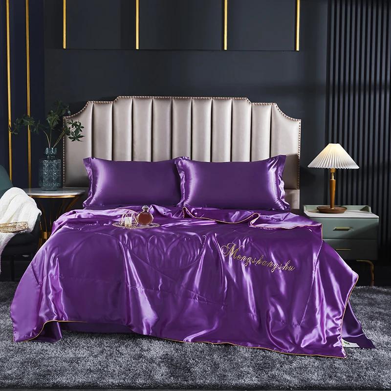 Однотонное гладкое летнее одеяло, легкое, роскошное, прохладное, шелковое, с кондиционером, тонкое, мягкое, приятное для кожи, тонкое, можно стирать 150x200cm 1Pc