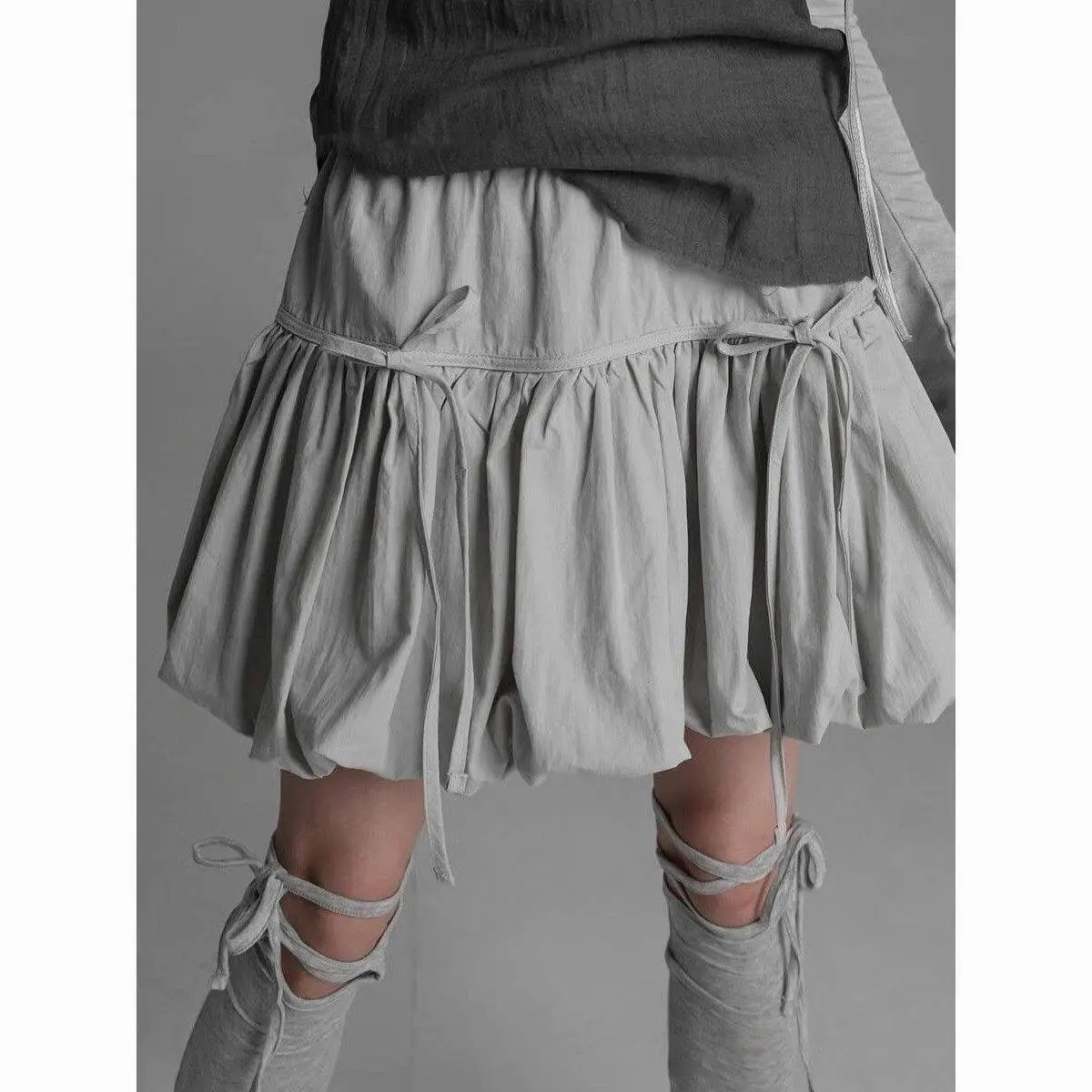Однотонное серое, черное готическое бальное платье, мини-юбка, женская летняя юбка с бантом, корейская мода, Y2k, шикарная плиссированная короткая юбка с эластичной резинкой на талии