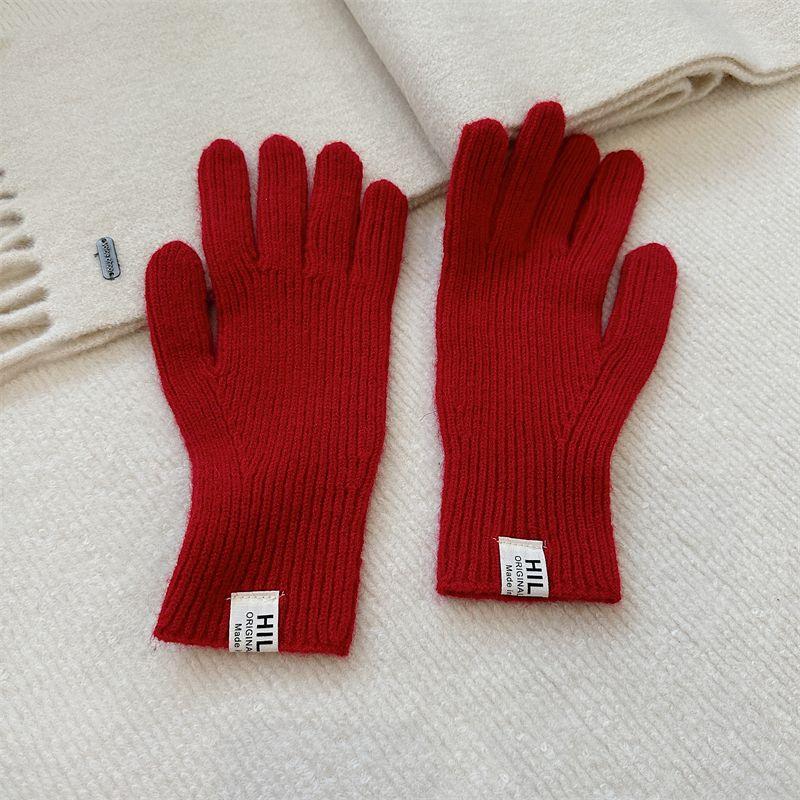 Однотонные вязаные зимние женские перчатки с сенсорным экраном, ветрозащитные, сохраняющие тепло и защищающие от холода, вязаные из шерсти, женские, с пальцами, зимние, красные, из шерстяной смеси G-Monster Red One size