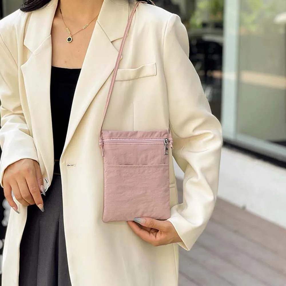 Однотонный кошелек для телефона с тонким ремешком, Однотонная легкая нейлоновая сумка через плечо, портативная простая школьная сумка на молнии