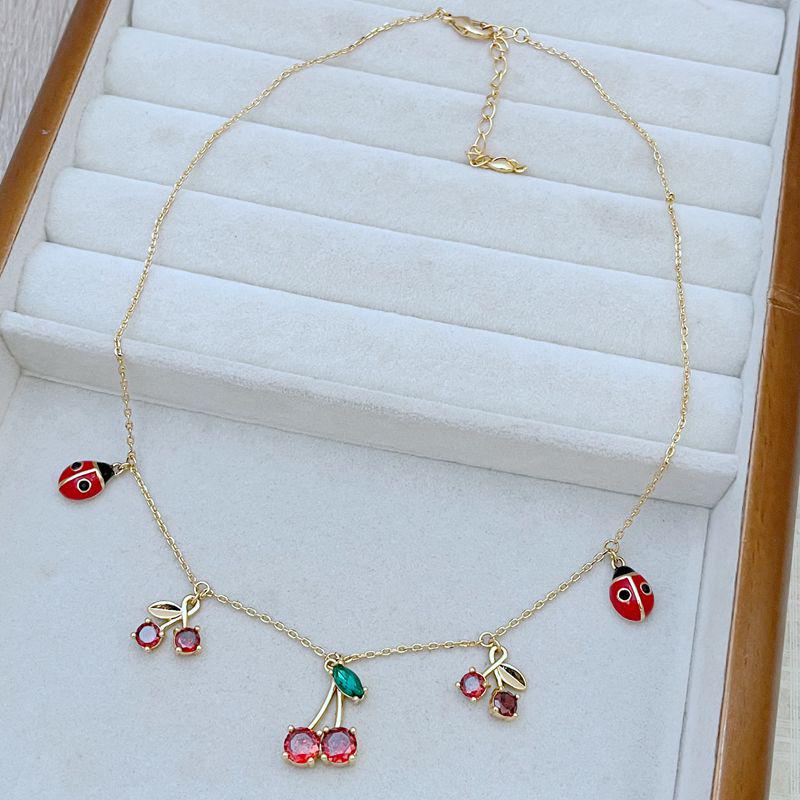 Ожерелье «Божья коровка и вишня» из эмали и циркония для женщин