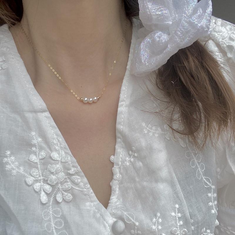 Ожерелье Женская ключица Цепочка Жемчуг Простой Темперамент Легкий Роскошный Улыбка Подарок Матери В Интернете Красное Улыбающееся Лицо Упаковка из 14-каратного золота