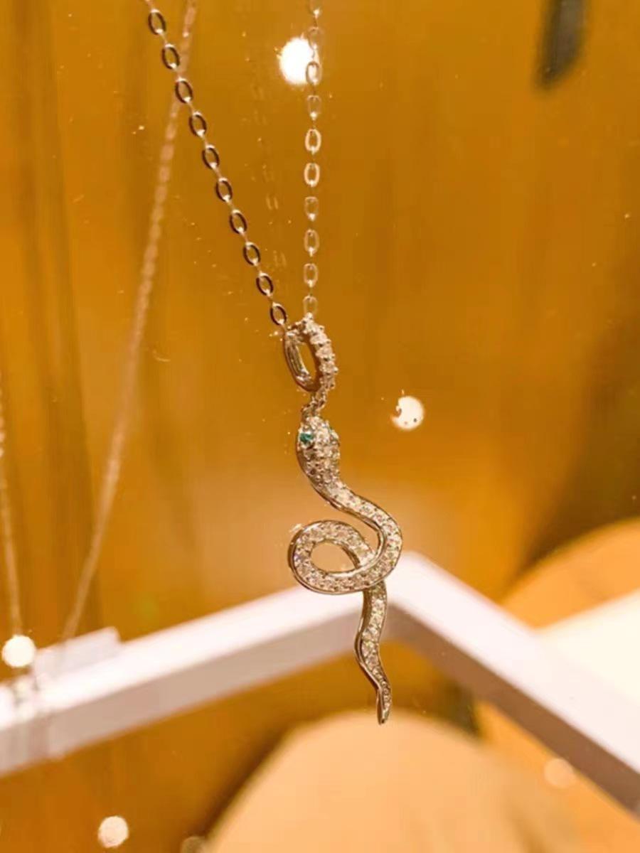 Ожерелье Змея с Сияющими Бриллиантами: Женская роскошная модная ключичная цепочка с простым, элегантным дизайном