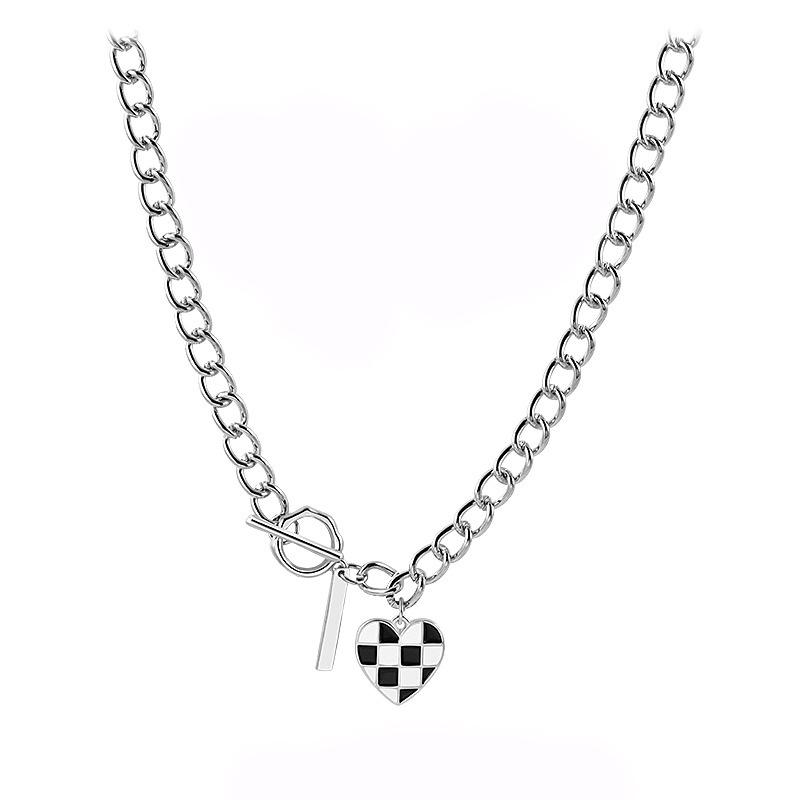Ожерелье «Любовь» в шахматном порядке, женское летнее дизайнерское легкое роскошное нишевое украшение, горячая девушка, сладкий и пряный стиль, ожерелье из титановой стали, женская подвеска