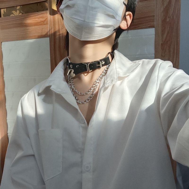 Ожерелье Чокер Нашейник Ожерелье Панк Украшения Оригинальная Цепочка на Ключицу Ожерелье в Темном Стиле Кольцо на Шею Женское Black double chain